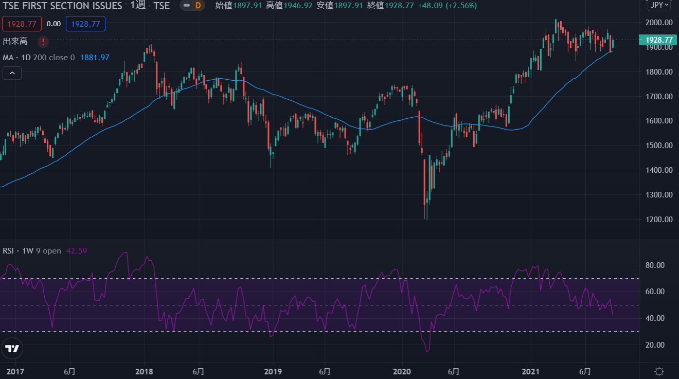 今週のTOPIXの終値は1928.77でした。先週より-(+2.54%)となりました。