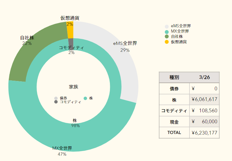 基本は株100%で運用してます。自分のお小遣いとして20万円だけ残してあとはすべて証券口座に移しております。