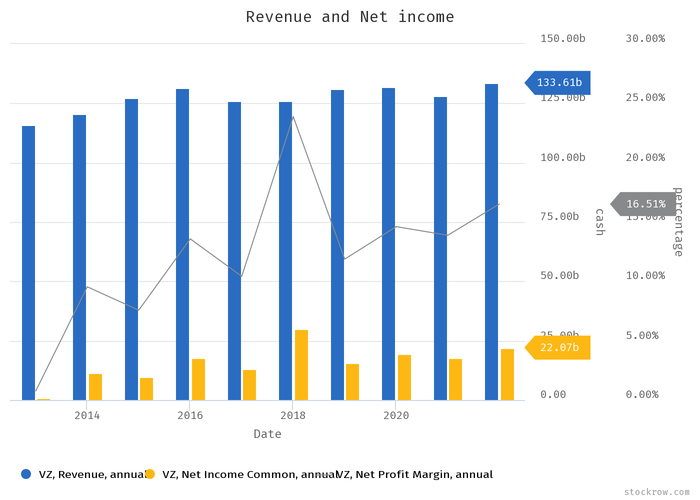 売上の差を見てみましょう。これを見るとペプシコが圧倒的ですね。コカ・コーラはライセンス販売を行っている関係で売上はかなり少なく見えてしまう点はありますが、それでも3社の中で唯一右肩下がなのが気がかりです。