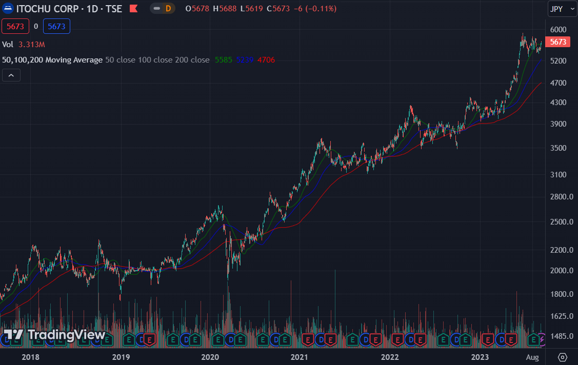 この中で、資源、加工、小売、販売までの広範なビジネス領域に参入し、多岐にわたる事業分野をカバーしており、その幅広さから伊藤忠は総合商社として知られています。特に、日本の「5大商社」と呼ばれる三菱商事、三井物産、住友商事、伊藤忠商事、丸紅の中で、伊藤忠は資源に依存しない利益構造を持つことが強みです。
